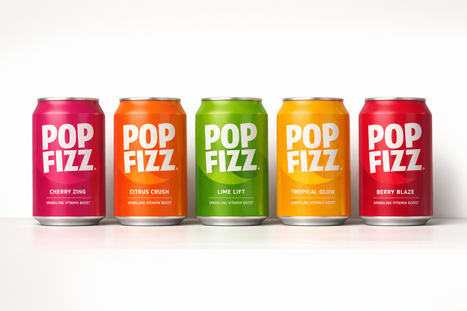 While the product concept was clear, Pop Fizz required a brand identity that could visually capture its energy and distinct personality. In a saturated beverage market, the brand needed to be instantly recognisable and memorable. The identity also had to be flexible and scalable, working seamlessly across cans, social media, merchandise, and future brand extensions.